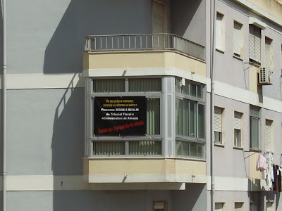 Ainda ninguém me consegui provar que eu estava errado. Os futuros moradores lá deram os 10% de sinal e as escrituras ficaram apalavradas para Agosto de 2009. 6 meses depois ainda ninguém tem qualquer perspectiva de quando elas se vão realizar. Correm vários rumores por estas bandas (tipo boato mentiroso) como sendo o não cumprimento dos compromissos financeiros pela construtora perante o IHRU e outra versão, mais soft, em que o suposto atraso se deve ao nosso processo em tribunal. Custou 60 euros, mas foi considerado um serviço publico o painel que colocamos em local vem visível para que os pretensos compradores não se deixassem levar pelo conto do vigário. Pelos vistos não fomos levados a sério na altura, mas o tempo veio-nos dar razão. Estão estes, agora, a arder com o dinheiro do sinal, à espera de melhores dias.